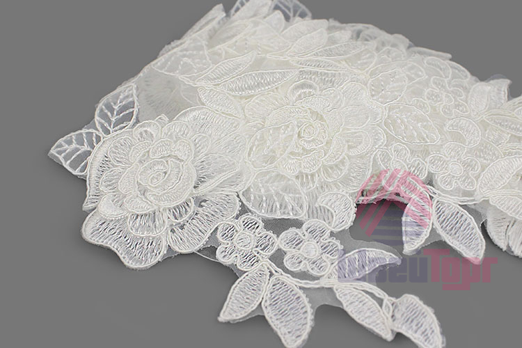 Ажурные пришивная аппликация — кружевной элемент на сетке. Это универсальное украшение, которое добавит изысканности вашему праздничному или свадебному платью, выпускному или концертному наряду, а также любой повседневной одежде, сумке и другим аксессуарам. Они идеально сочетаются с разными тканями — от нежного шёлка до практичной джинсы.