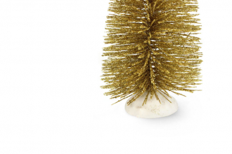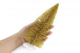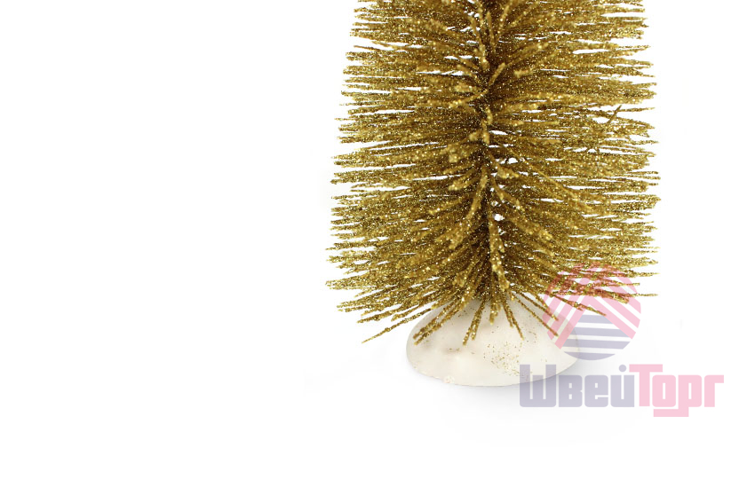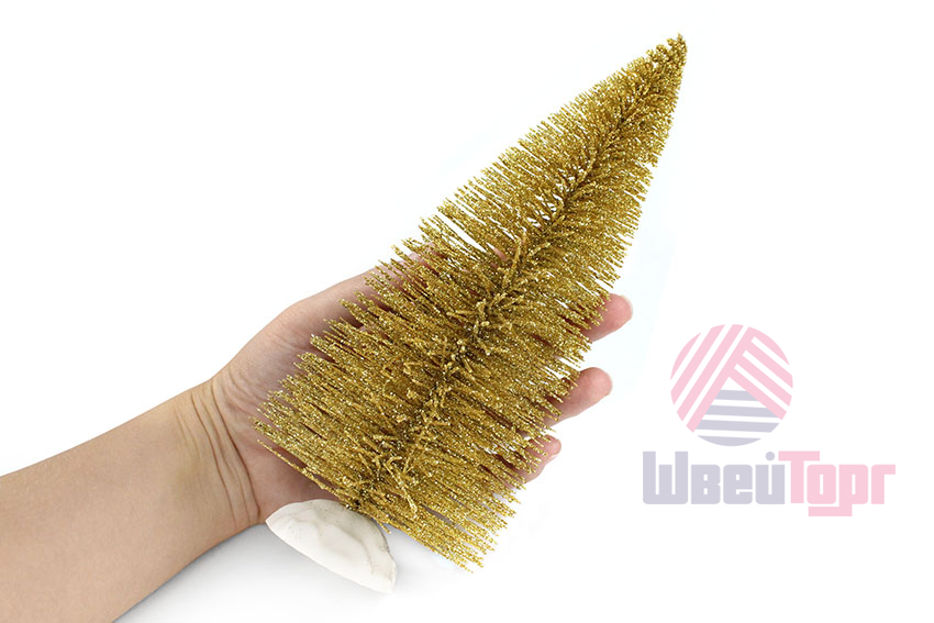 Декоративная ёлка высотой 20 см, выполнена из проволоки и усыпана мерцающими золотыми блёстками. Ёлка станет идеальным акцентом для праздничной композиции на столе, полке или рабочем столе, даря неповторимую атмосферу уюта и праздника без хлопок с живой хвоей.