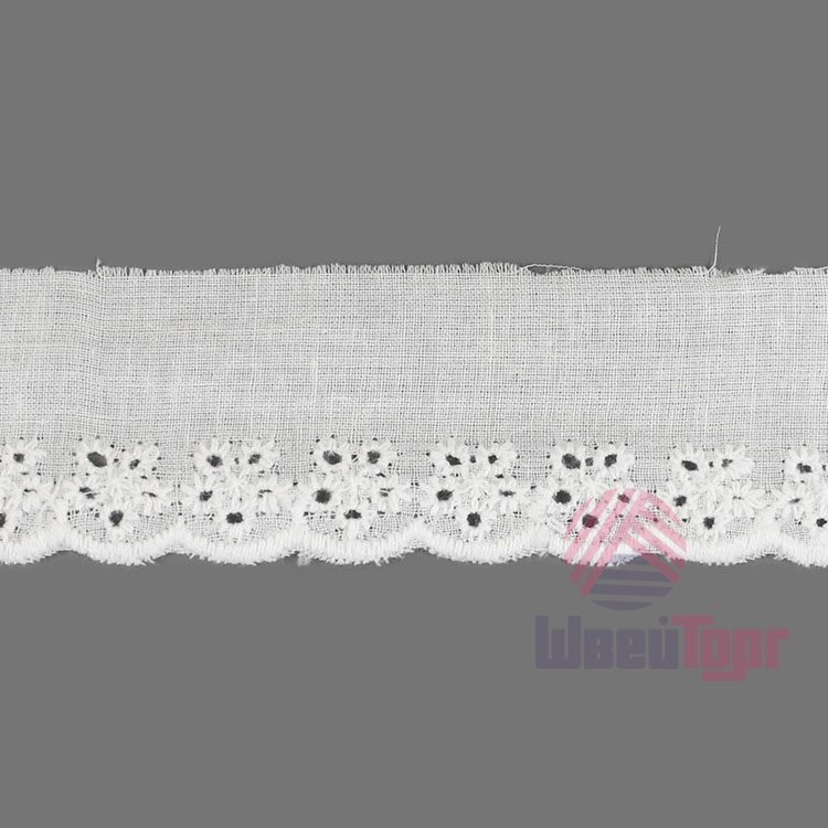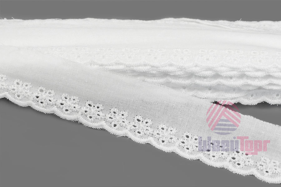 Прошва выполнена из мягкого хлопка с изящной машинной вышивкой и перфорациями. Создаёт эффект нежного кружева и приятна к телу.