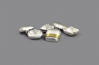 Эта деталь, сочетающая прохладу серебра и тепло позолоты, придаст костюму или жакету завершённый вид, подчеркнув чувство стиля и аккуратность.
