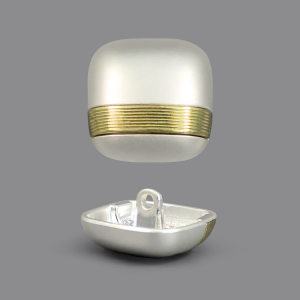 Эта пуговица на ножке выполненная в сдержанном современном стиле станет идеальным акцентом для делового гардероба. Она представляет собой лаконичный «мягкий» квадрат из металла с деликатно скруглёнными углами, имеет матовое серебристое покрытие. Её лаконичный дизайн оживляет тонкая золотистая полоска с фактурной поверхностью, проходящая по нижнему краю.