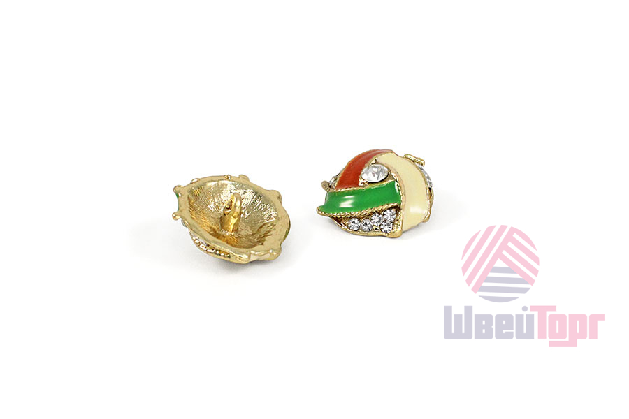 Эта элегантная пуговица станет изысканным акцентом вашего изделия. Её оригинальный дизайн сочетает в себе контрастные переплетающиеся элементы и множество искрящихся страз. Диаметр пуговицы: 2,2 см.