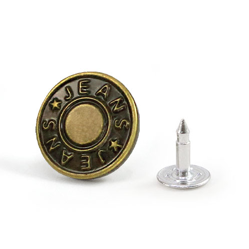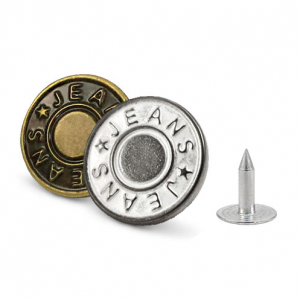 Стильная металлическая пуговица, представлена в двух цветах – матовый чёрный и антик. Пуговица имеет плоскую форму и декор в виде надписи – "Jeans Jeans ". Эта пуговица станет стильным завершающим штрихом для ваших изделий из джинсы, будь то джинсы, джинсовые шорты или джинсовые куртки. В комплект входят надёжные гвоздики для крепления.