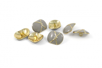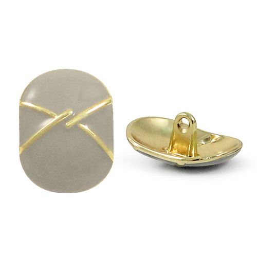 Металлическая пуговица на ножке, выполнена в минималистичном дизайне: прямоугольная форма со сглаженными мягкими углами, пуговица имеет глянцевую поверхность, которая украшена лишь тонкими объёмными линиями, создающими современный графический акцент.