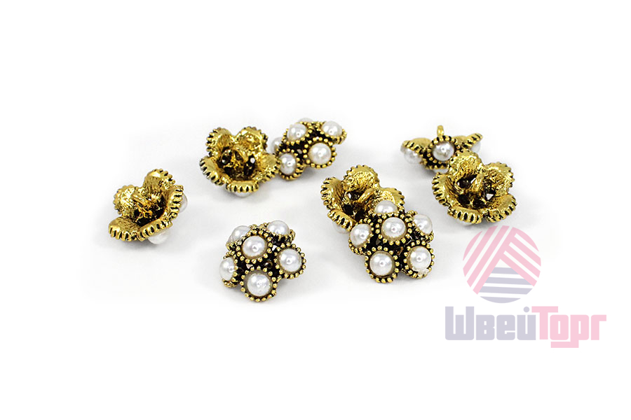 Купить оптом в Челябинске Пуговица №П-1048 28L (золото/перламутр) 1/20 шт - цена 513 руб.