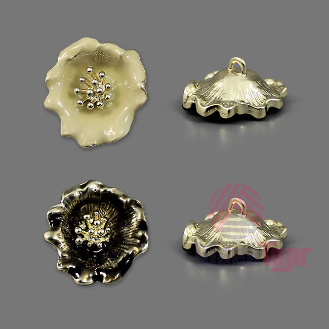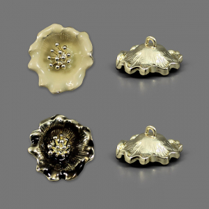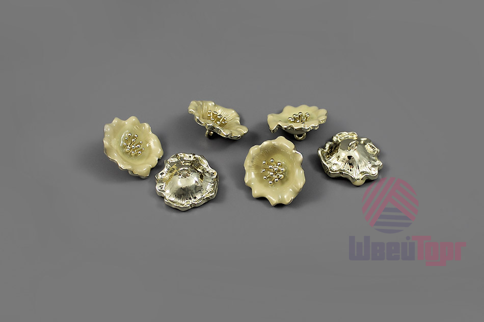 Эта металлическая пуговица на ножке, выполненная в форме цветка с золотистыми тычинками, станет стильным и контрастным акцентом для ваших изделий. Пуговицы выполнены в двух вариантах: нежный - золото/крем и более дерзкий - золото/чёрный. Оба варинта идеально сочетаются с ярко-золотистой основой.