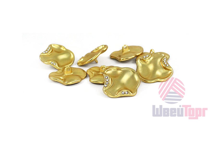 Стильная металлическая пуговица на ножке, имеет неправильную форму (размеры габаритные - 23х23 мм). Пуговица станет отличным украшением ваших костюмов и жакетов.