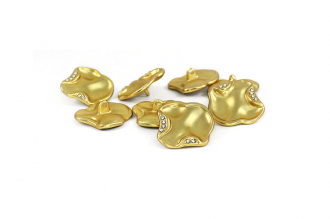 Оригинальная пуговица для тех, кто ценит современный дизайн и внимание к деталям. Её уникальная форма в виде «кляксы» и матовое золотое покрытие создают сдержанный и стильный акцент. Мерцание мелких стразов добавляет нотку роскоши, делая эту пуговицу идеальным выбором для дизайнерских проектов и преображения вашего гардероба.