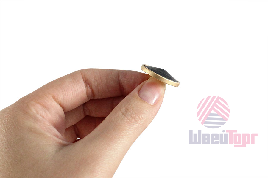 Пуговица на ножке для создания минималистичного и стильного образа. Пуговица собрана из двух частей – основа из матового золота и лицевая часть, конусообразной формы, с лёгким эффектом разводов. Сдержанный и интересный элемент для оригинального образа.