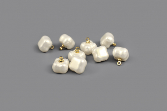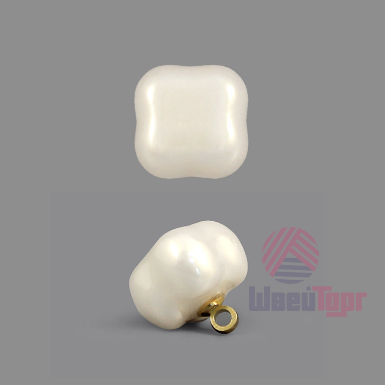 Эта пуговица на ножке сочетает в себе лаконичность формы и изысканную нежность. Её основание – небольшая золотистая ножка для комфортного пришивания. Сама пуговица выполнена в форме мягкого ромба с округлыми, словно воздушными контурами, напоминающими мягкое облачко. Пуговица имеет жемчужное покрытие, которое мягко и глубоко переливается на свету, добавляя изделию утончённое сияние.