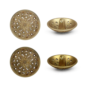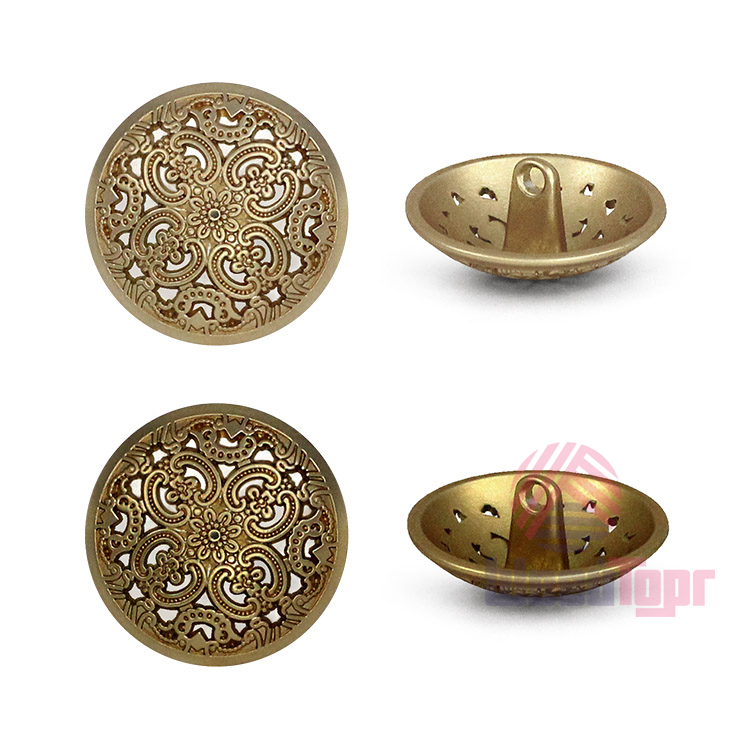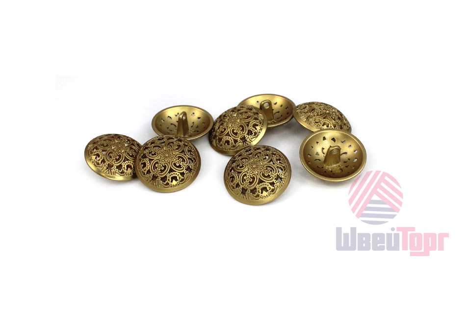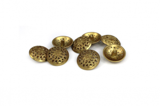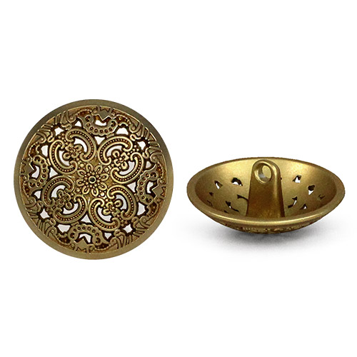 Позвольте вашему наряду расцвести! Эта металлическая пуговица напоминает драгоценную миниатюру. Её сложный, резной дизайн завораживает: ажурная резьба в виде геометрических и растительных орнаментов делает эту пуговицу маленьким шедевром.