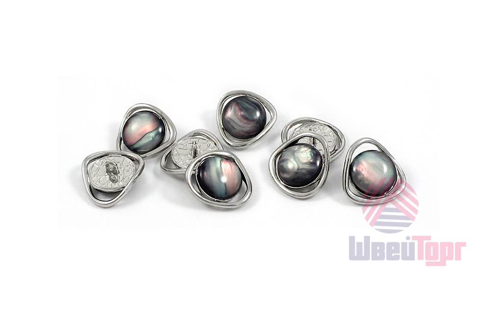 Стильная металлическая пуговица на ножке, имеет оригинальную форму (габаритные размеры - 22х23 мм). Пуговица станет отличным украшением ваших костюмов и жакетов.