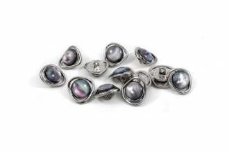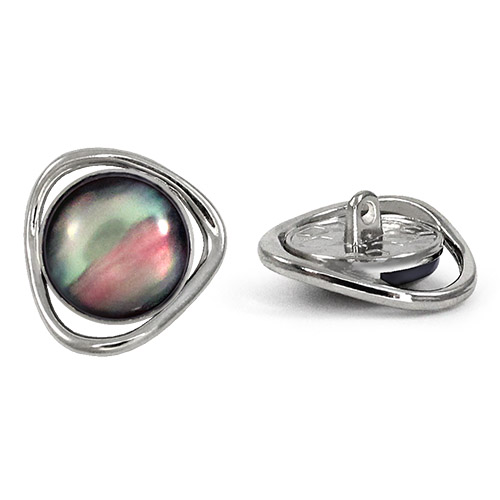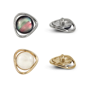 Эта пуговица напоминает миниатюрное произведение искусства. Её основа – стильный асимметричный обод, в центре которого, словно драгоценный камень, сияет выпуклая глянцевая вставка. Пуговица притягивает взгляд своей безупречной чистотой линий и лаконичностью. Представлена в двух вариантах: меланж/серебро и белый/золото.