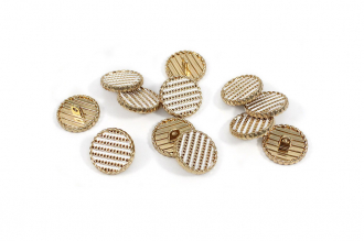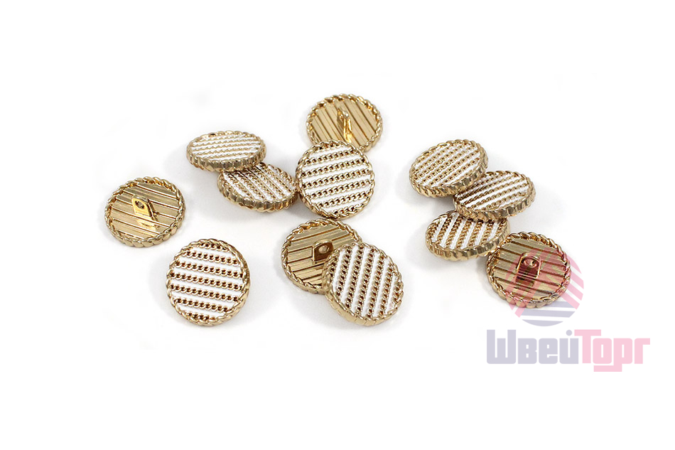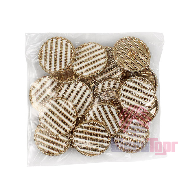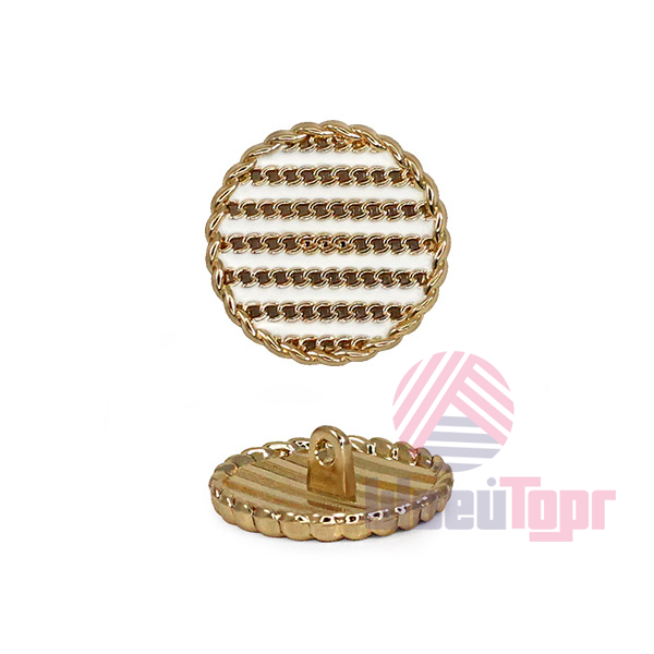 Позвольте вашему наряду расцвести! Эта металлическая пуговица имеет оригинальную фактуру. Её сложный, резной дизайн завораживает: ажурные золотые звенья цепей контрастируют с белой основой пуговицы, что делает её настоящим шедевром.