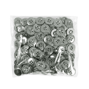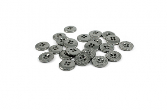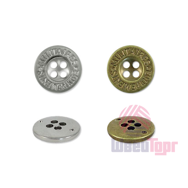 Эта пластиковая пуговица с эффектной металлической имитацией обладает лёгким весом, что делает её практичной в пришивании и комфортной в носке. Классическая круглая форма с четырьмя отверстиями и лаконичным углублением в центре дополнена контурной гравировкой «MILITAIRES EQUIPEMENTS».