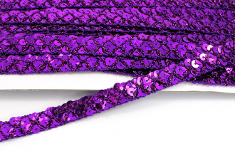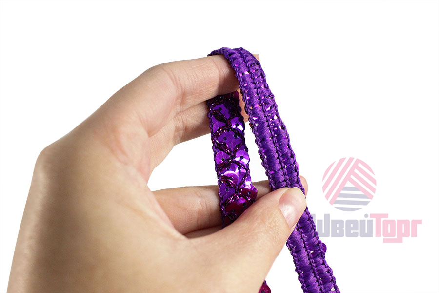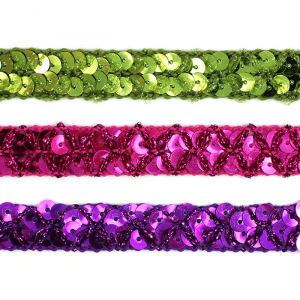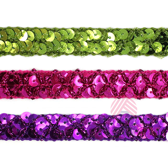 Декоративная тесьма с пайетками служит акцентной отделкой для разнообразных проектов, от скрапбукинга до пошива национальных и сценических костюмов. Плетение тесьмы создаёт красивый узор, а добавление пайеток придаёт мерцающий эффект.