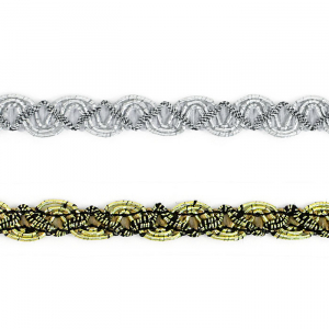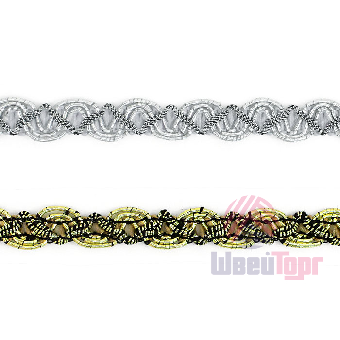 Тесьма доступна в двух цветах: золото и серебро. Она идеально подходит для отделки одежды, декора сценических костюмов, а также для украшения головных уборов и элементов интерьера. Представляет собой прочную плетёную, рельефную тесьму с повторяющимся геометрическим узором. Тесьма пронизана металлизированными нитями, что придаёт ей уникальный блеск. Создавайте свои неповторимые изделия!