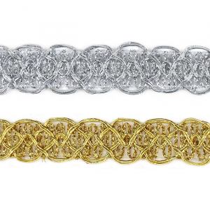 Тесьма доступна в двух цветах: золото и серебро. Она идеально подходит для отделки одежды, декора сценических костюмов, а также для украшения головных уборов и элементов интерьера. Представляет собой прочную плетёную, рельефную тесьму с повторяющимся геометрическим узором. Тесьма пронизана металлизированными нитями, что придаёт ей уникальный блеск. Создавайте свои неповторимые изделия!