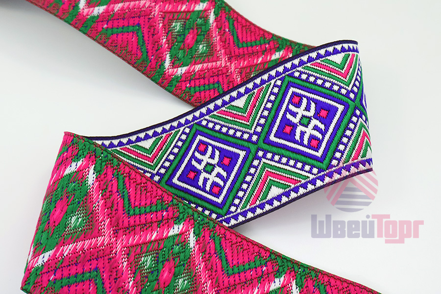 Жаккардовая тесьма – это невероятно универсальный материал с множеством преимуществ. Тесьма используется в производстве одежды как отделочный элемент. Применяется для декорирования женской и детской одежды, а также национальных и сценических костюмов. Жаккардовые ленты часто используются для создания уникальных сувениров и оформления подарков, для отделки мебели, предметов интерьера, таких как коврики, пледы и подушки. Жаккардовая тесьма используется в производстве сумок, рюкзаков и других текстильных аксессуаров.