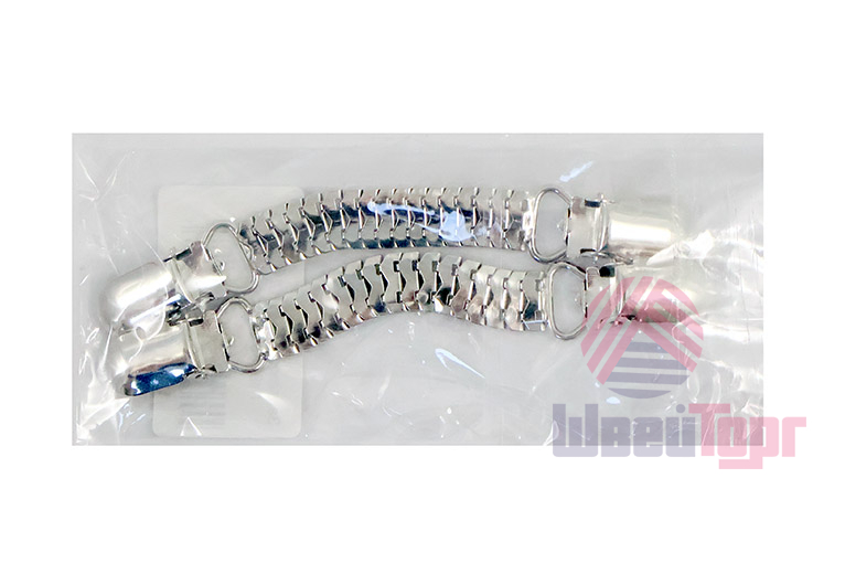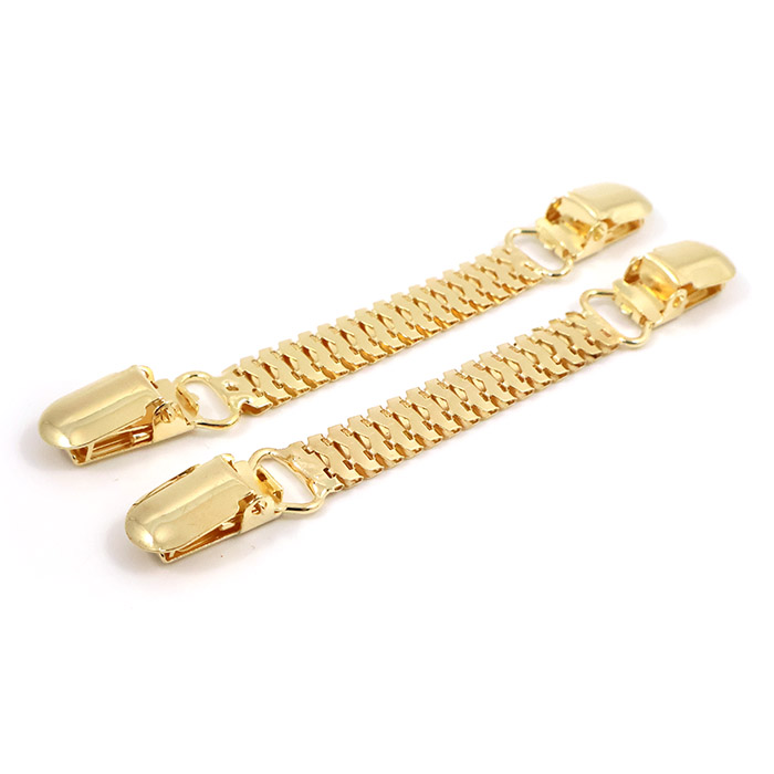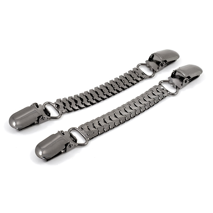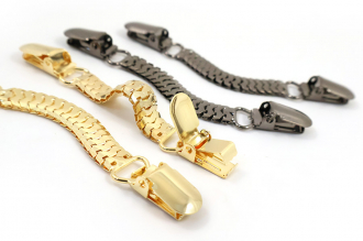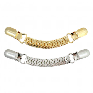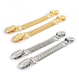 Металлическая застёжка для одежды №9088 — это практичный аксессуар, состоящий из двух зажимов-клипс, соединённых подвижной плоской цепью.